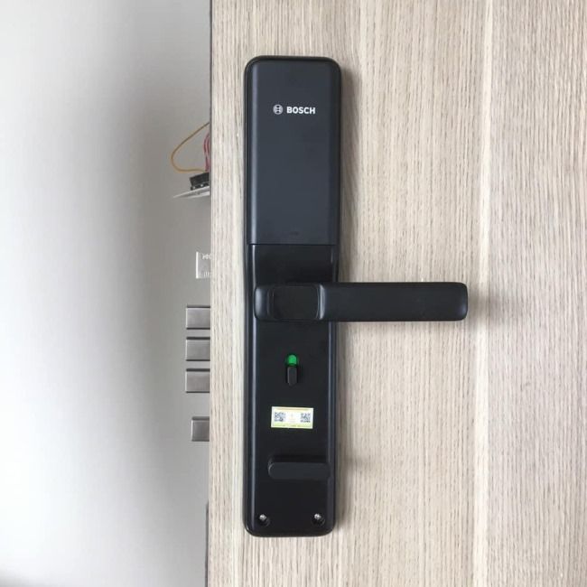 Bosch ID30-DE App màu đen của thương hiệu khóa Đức cao cấp là dòng khóa tay gạt có kích thước nhỏ nhất của hãng (72x 352mm) nên phù hợp với cả cửa chính và cửa thông phòng. Đây là phiên bản có thêm tính năng mở và quản lý khóa từ xa qua mobile